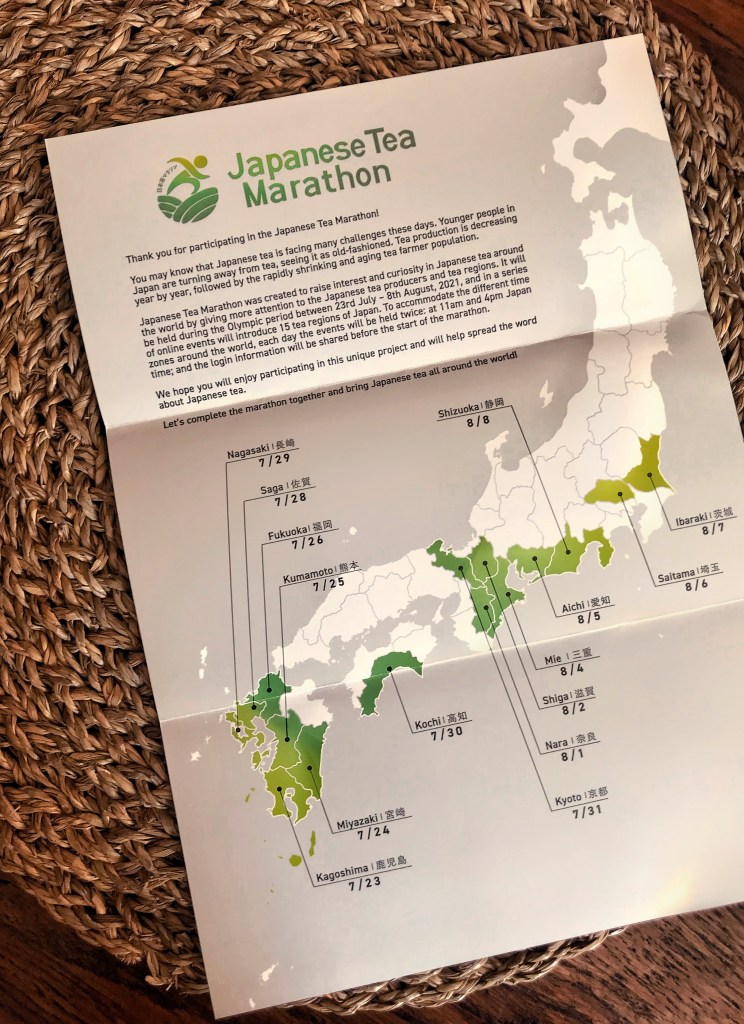 Durante i 15 giorni in cui si svolgeranno le Olimpiadi, visiteremo le zone in cui è coltivato il tè, attraversando 3 delle 4 principali isole giapponesi: Honshu, Kyushu and Shikoku. Tutte le mattine alle 9, ora italiana, mi metterò al computer e insieme a tantissimi tealover ascolteremo storie, vedremo foto e video e assaggeremo deliziosi tè giapponesi.