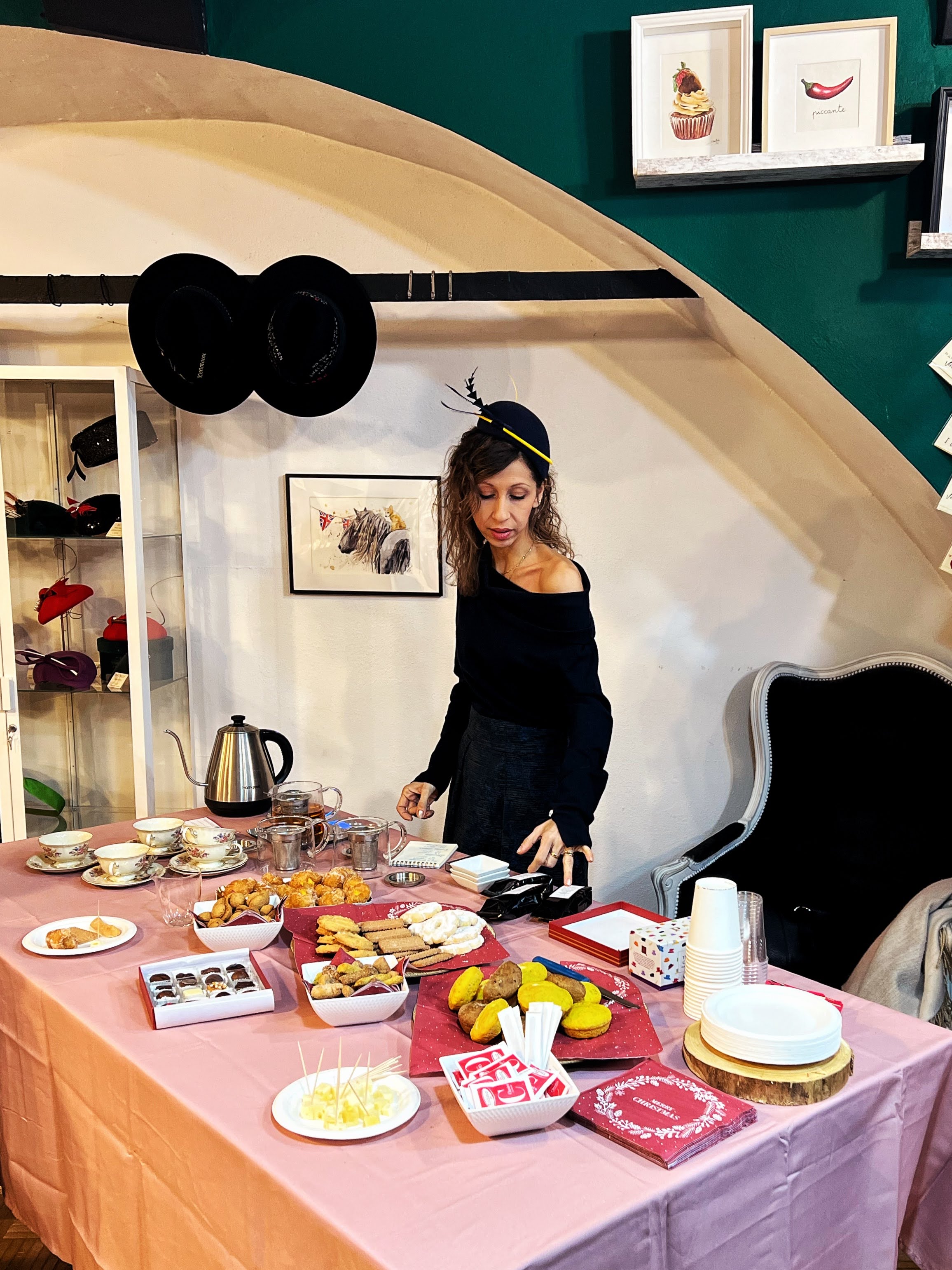 Tutto nella splendida cornice creativa del Lab di Sara… non so se si nota il’ fascinator’ che indosso per l’occasione, uno dei bellissimi copricapi creati dalla sua maestria: scopriteli tutti sul suo shop!